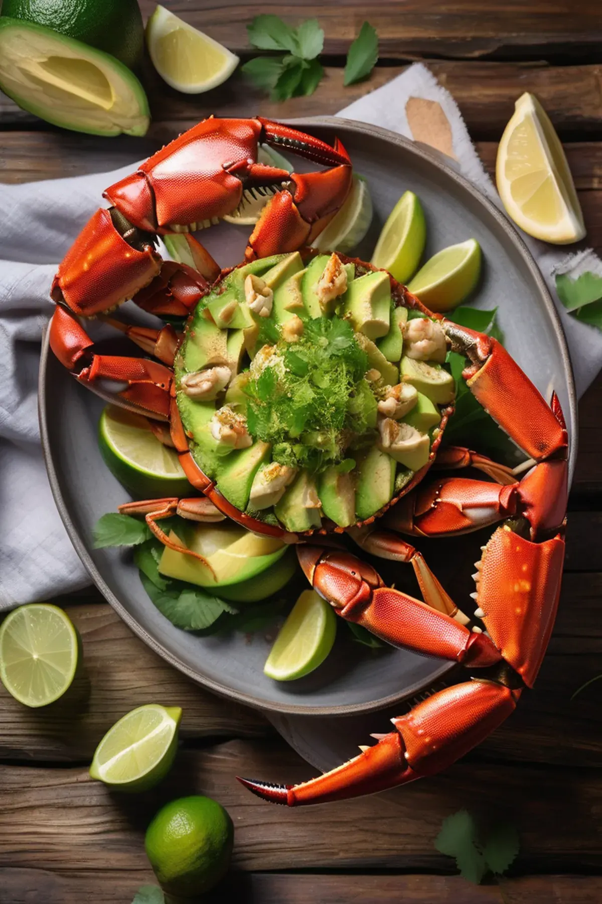 Succulent crab legs roasted with garlic butter and served over creamy avocado purée, finished with crispy breadcrumbs and fresh citrus for a luxurious yet simple seafood dish.