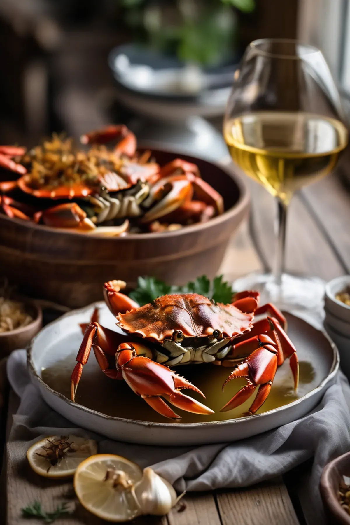 Sweet, caramelized onions complement succulent roasted crab meat in this elegant dish, finished with a rich garlic-infused butter sauce and fresh herbs.