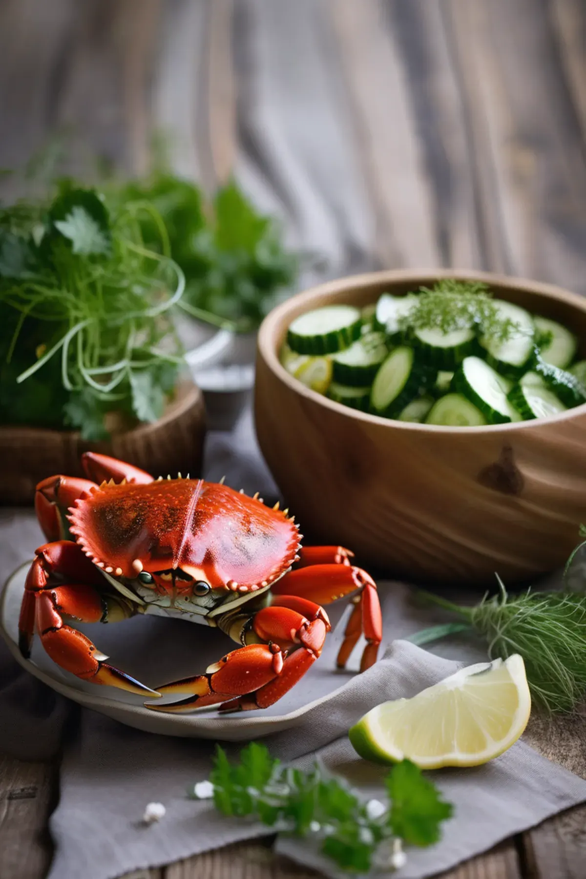Succulent roasted crab infused with garlic and herbs, served alongside a refreshing cool cucumber salad with a tangy lime vinaigrette. A sophisticated yet simple dish that celebrates the natural sweetness of fresh crab.