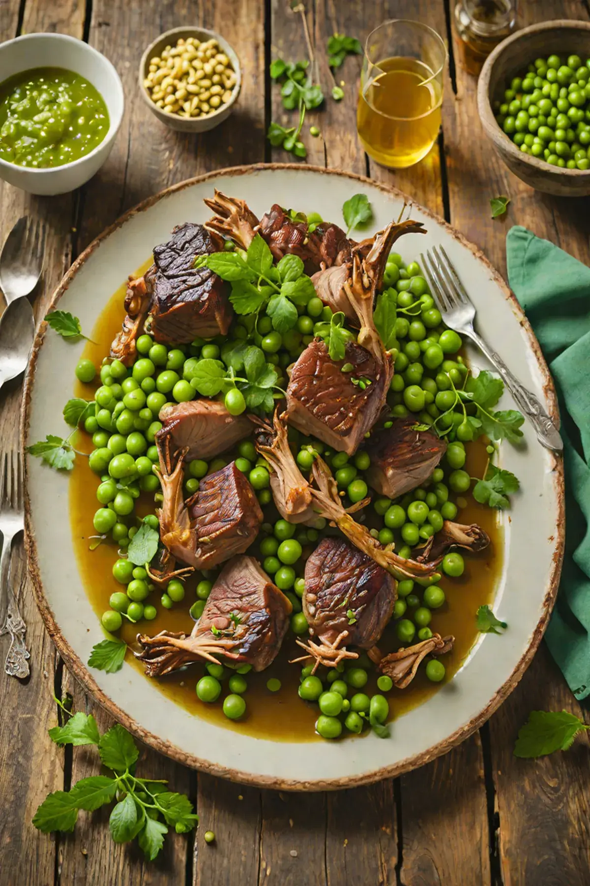 Roasted Goat with Pea and Mint Reduction