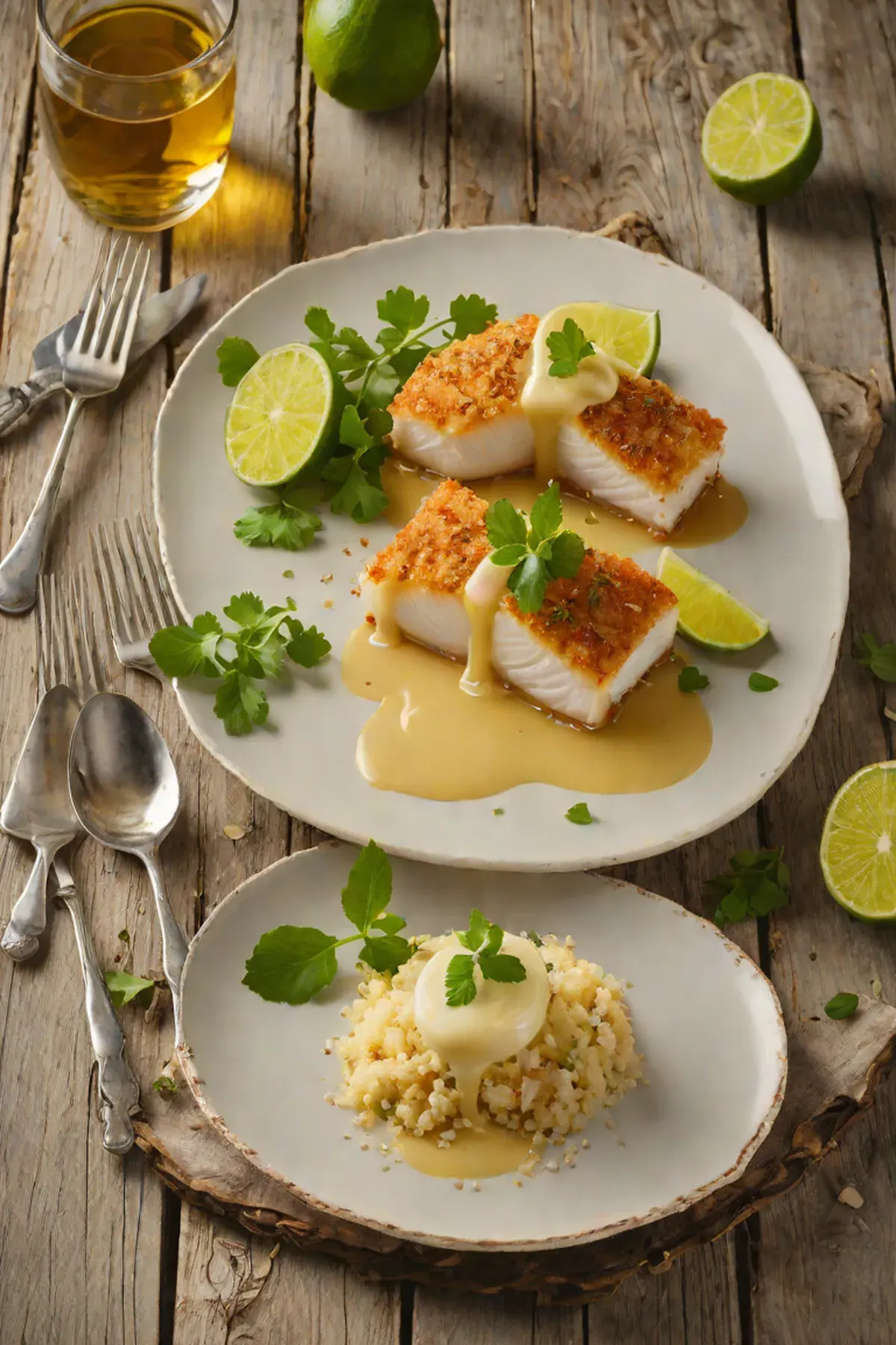 Roasted Halibut with Cassava Root Crust and Lime Beurre Blanc