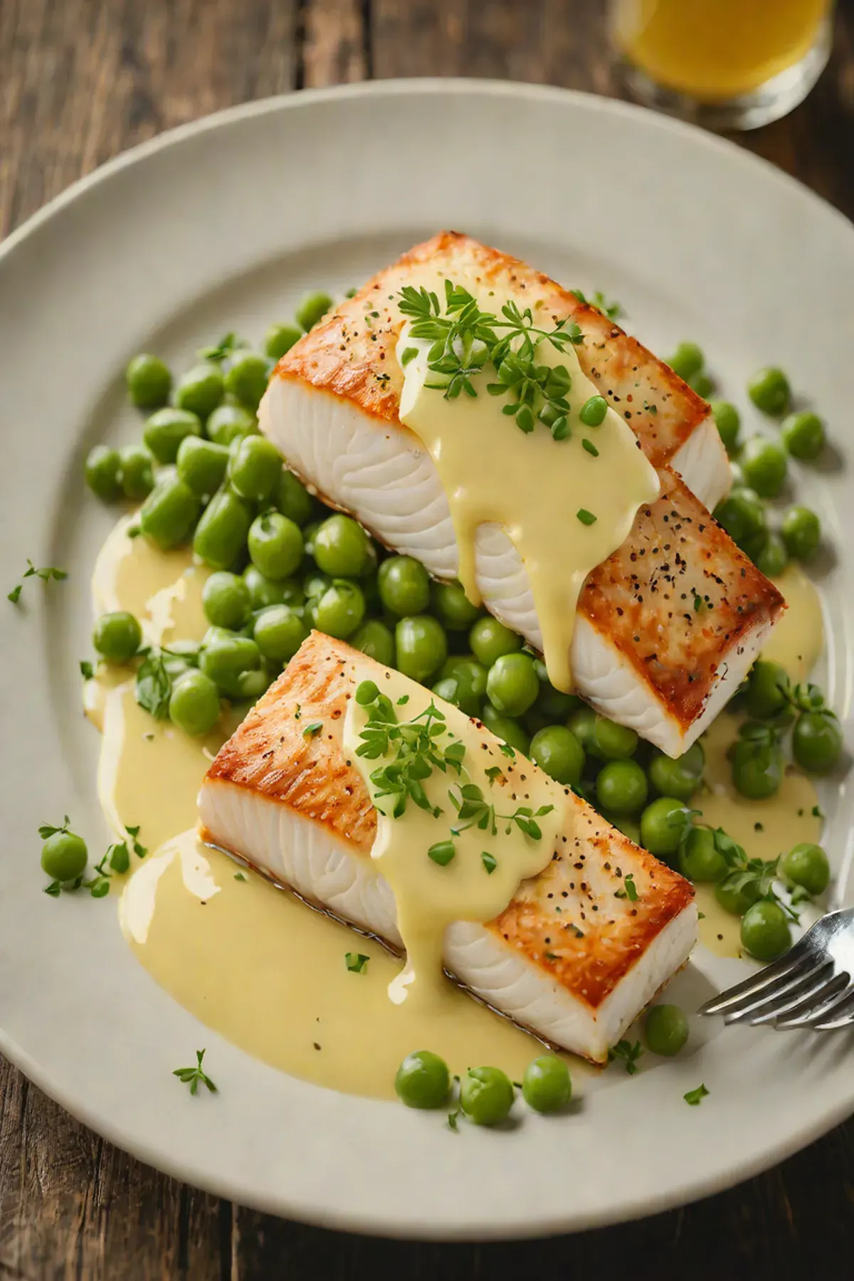 Roasted Halibut with Spring Peas and Lemon Beurre Blanc