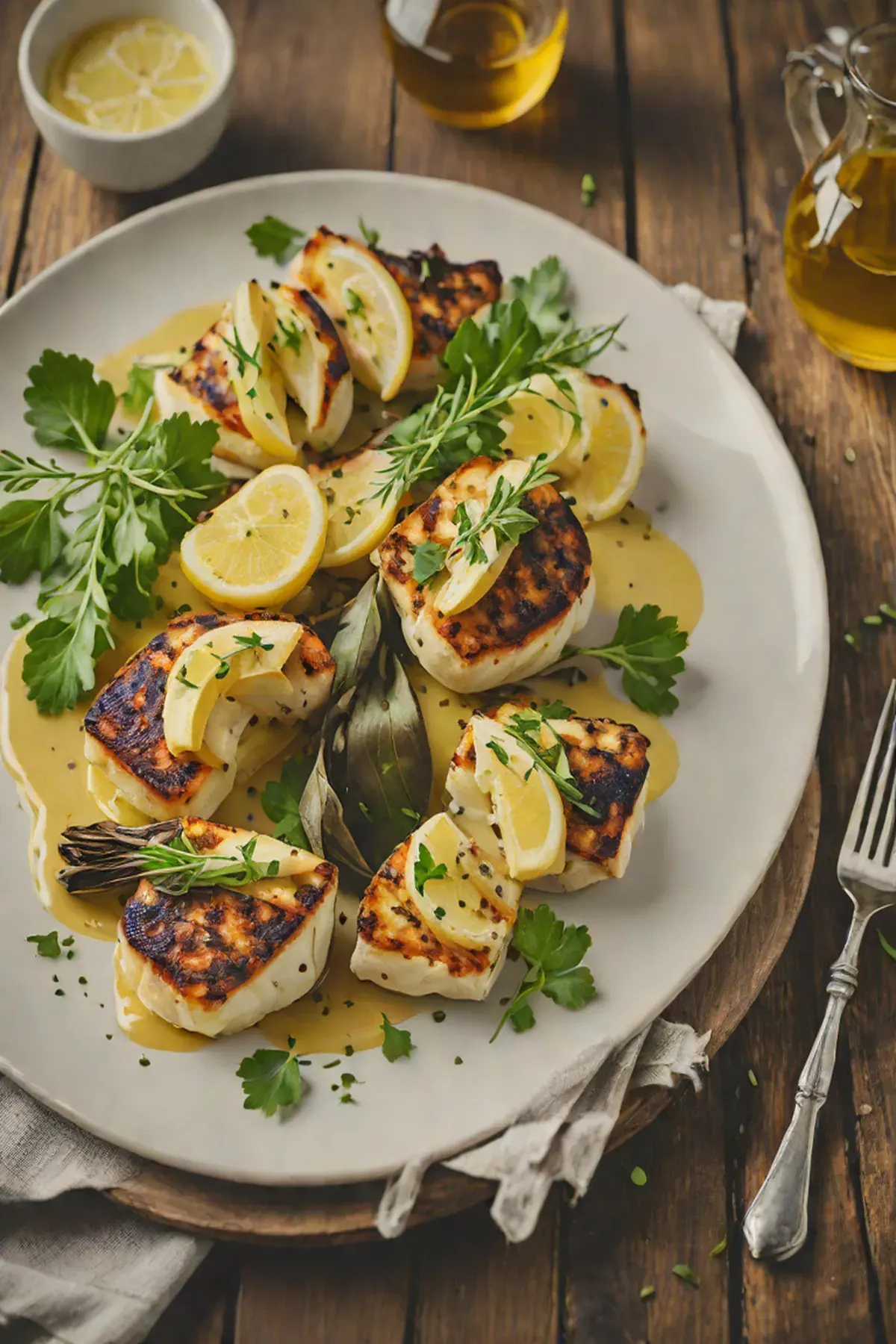 While artichokes roast, pat the halloumi slices dry with paper towels, then brush both sides lightly with the remaining herb oil.