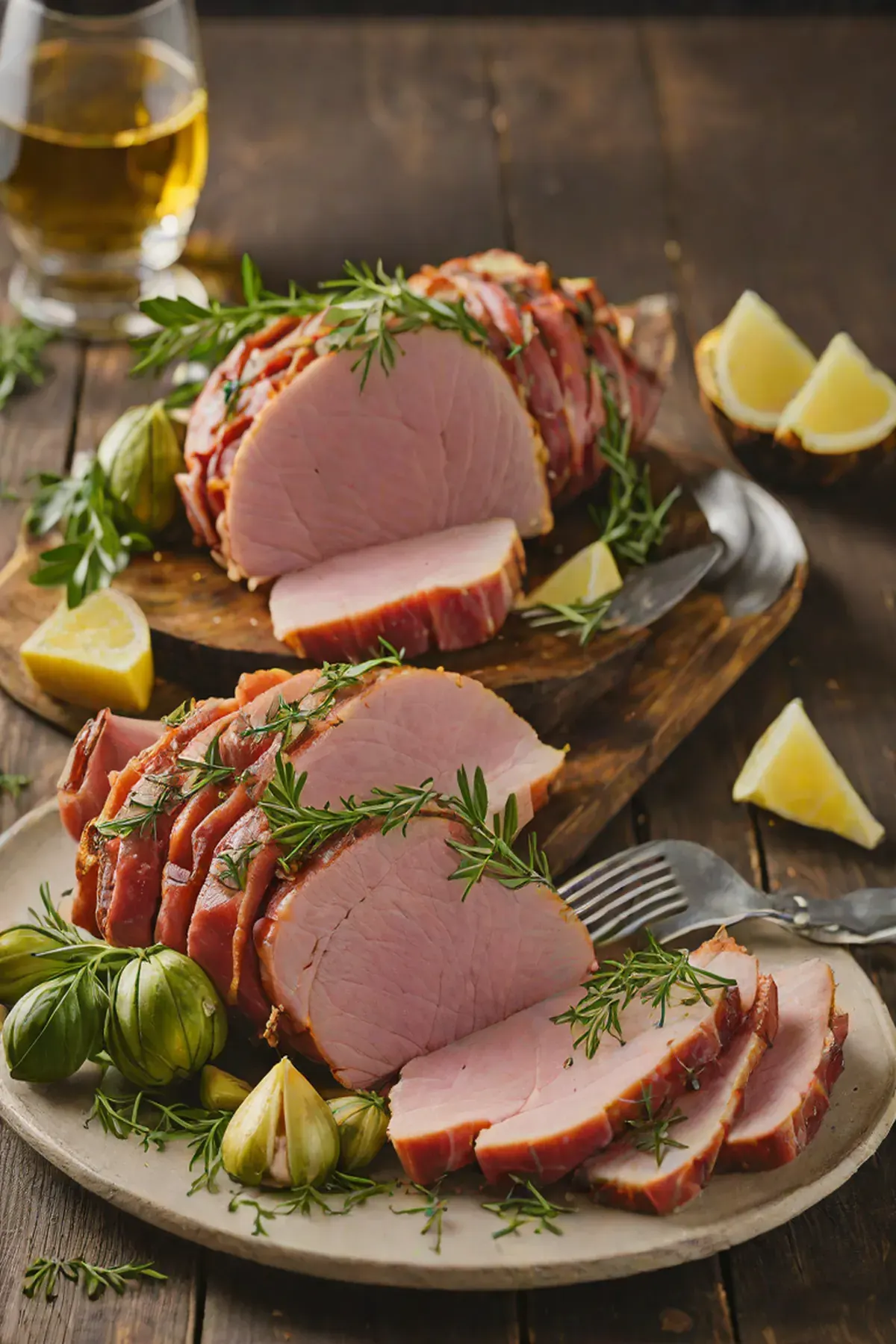 Roasted Ham with Artichoke Hearts and Herb Butter