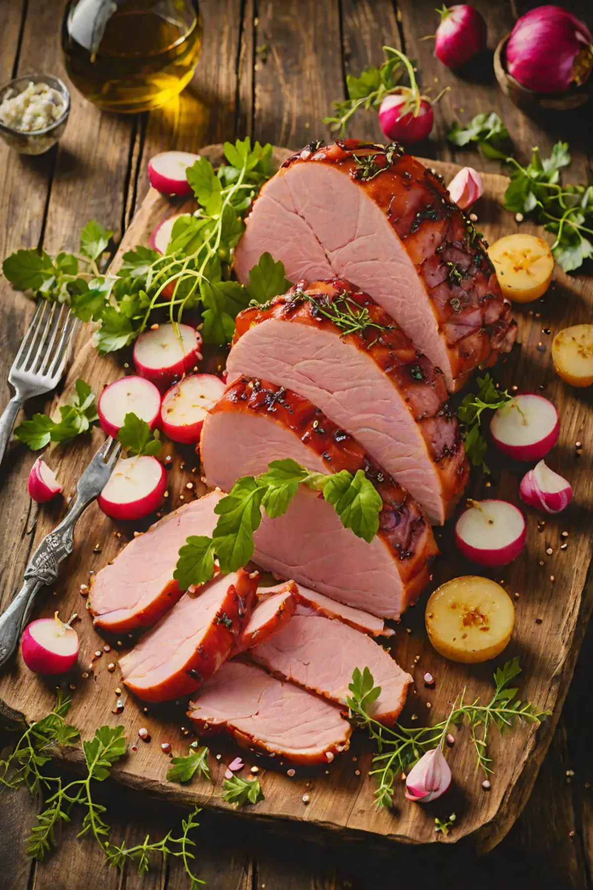 Roasted Ham with Radish and Herb Glaze