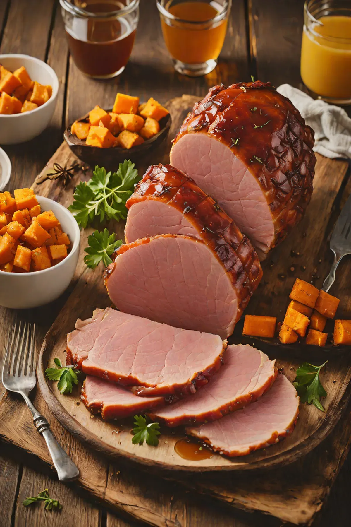 Roasted Ham with Sweet Potato and Maple Glaze