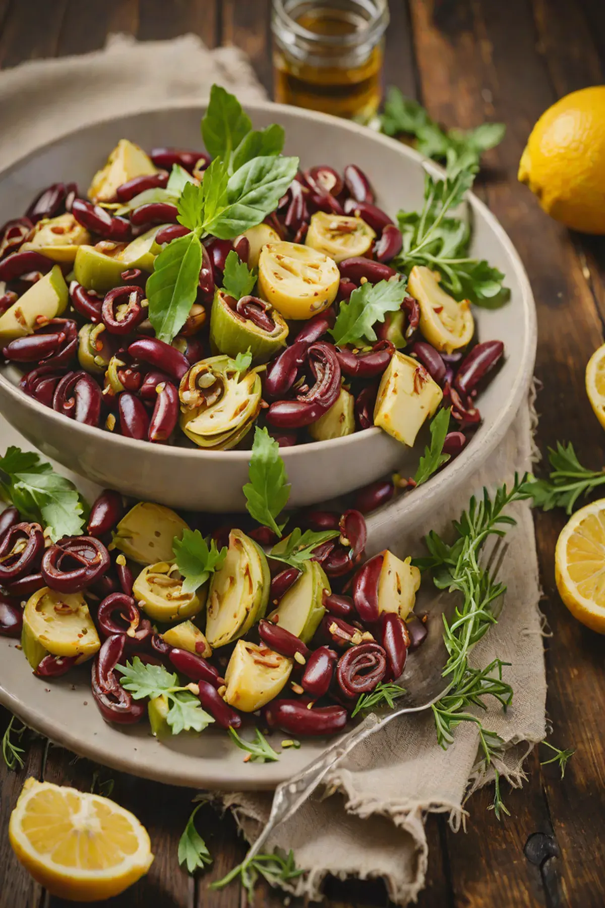 Add the dried kidney beans, artichoke hearts, sliced red onion, and sun-dried tomatoes to the bowl and toss gently until all ingredients are evenly coated with the herb oil mixture.