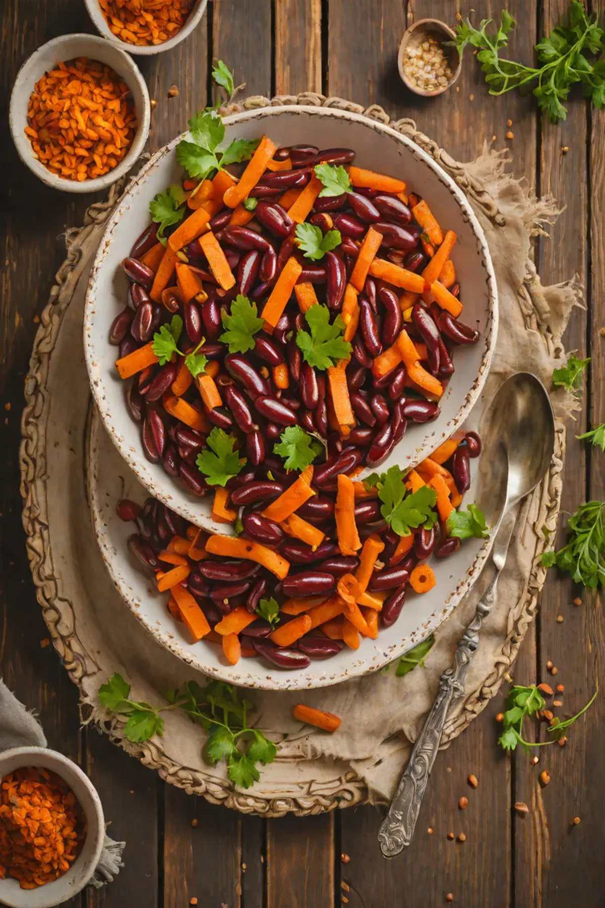 Roast in the preheated oven for 25-30 minutes, stirring the mixture halfway through cooking. The beans should be golden and slightly crispy on the outside, while the carrots should be tender and lightly caramelized.