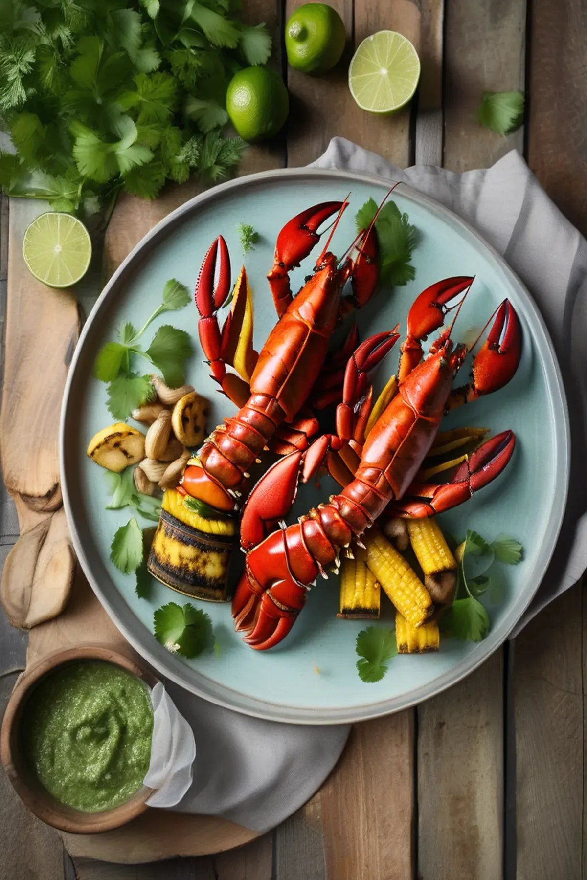 Roasted Lobster with Plantain and Cilantro-Lime Butter