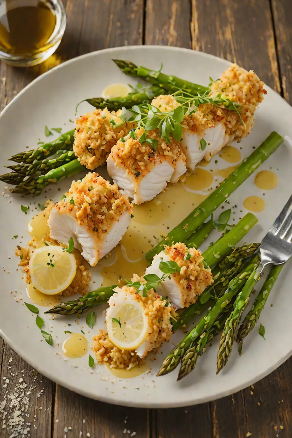 While asparagus roasts, combine panko breadcrumbs with 2 minced garlic cloves, lemon zest, and 1 tablespoon melted butter in a small bowl. Set aside.