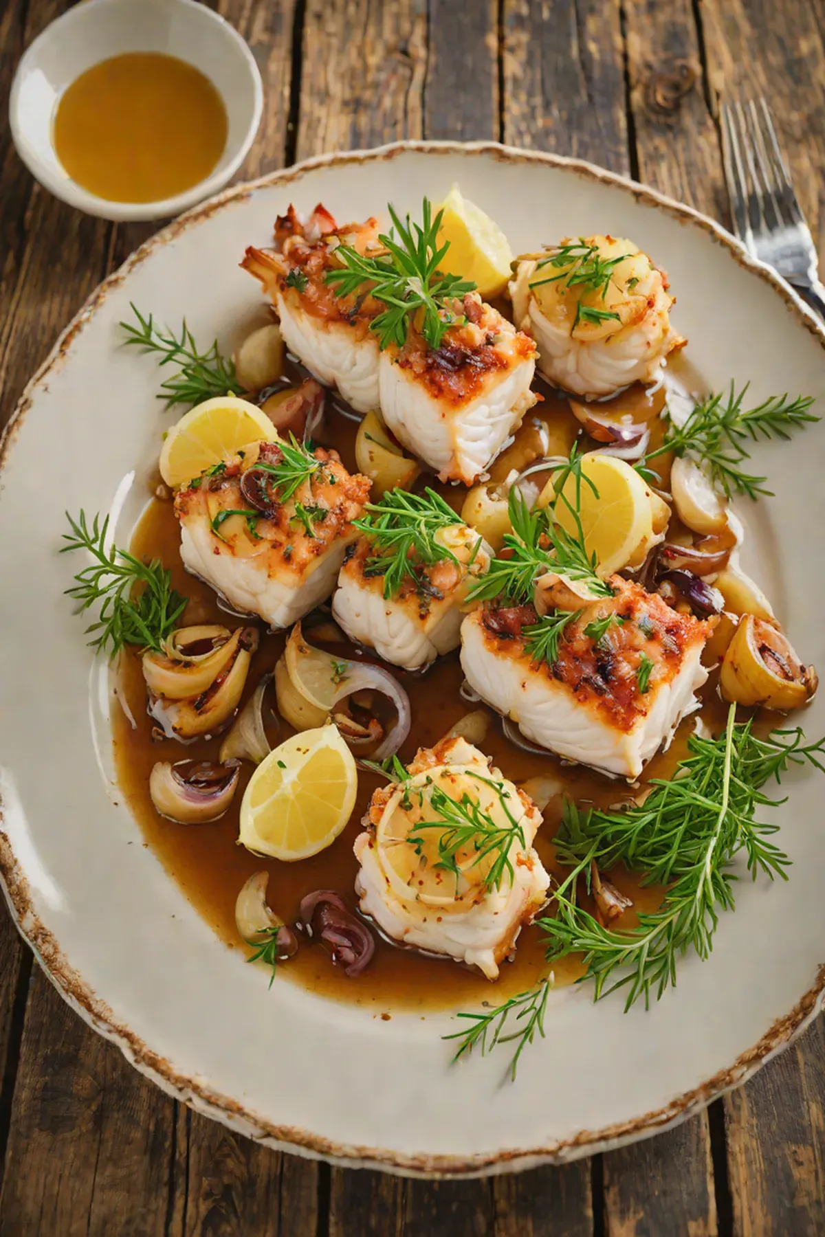 Roasted Monkfish with Caramelized Onion and Thyme