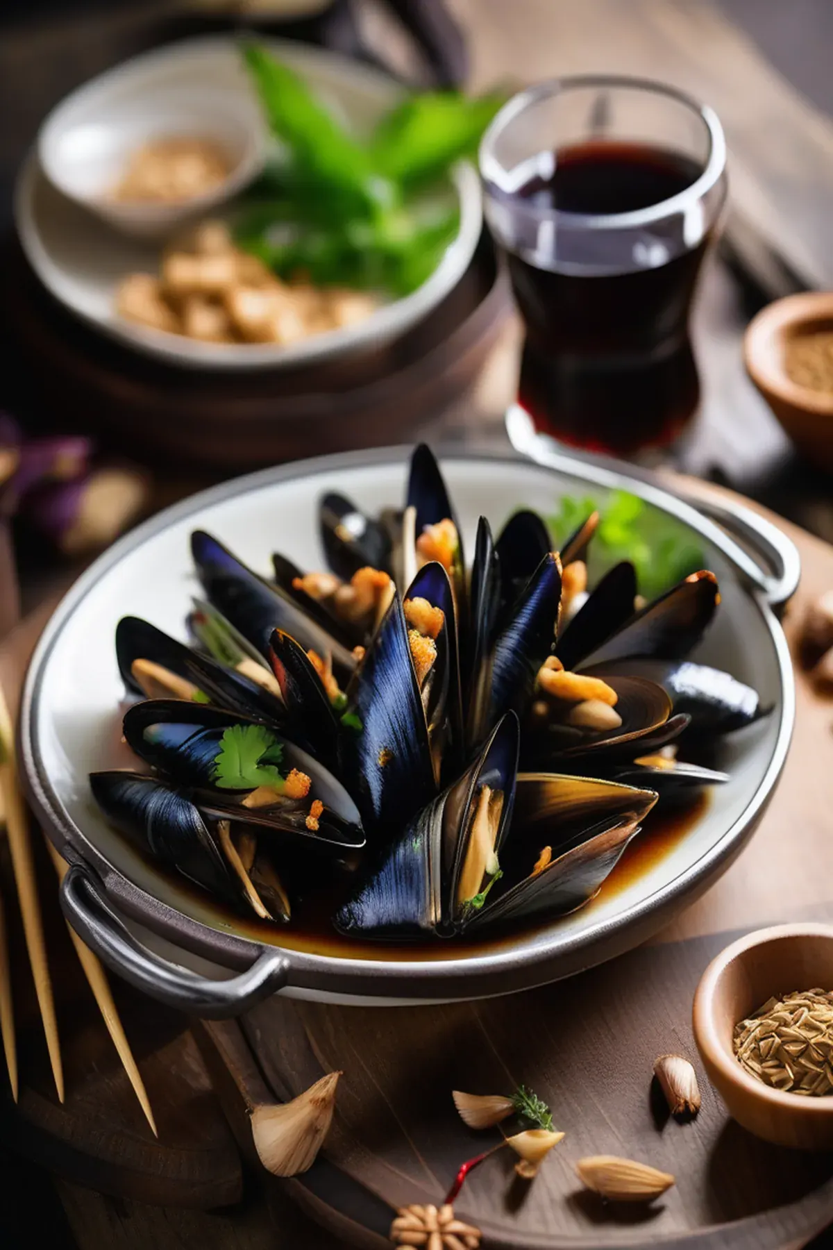 Succulent mussels paired with tender bamboo shoots, roasted until caramelized and finished with a savory garlic-ginger glaze. A restaurant-quality seafood dish that's simple yet elegant.