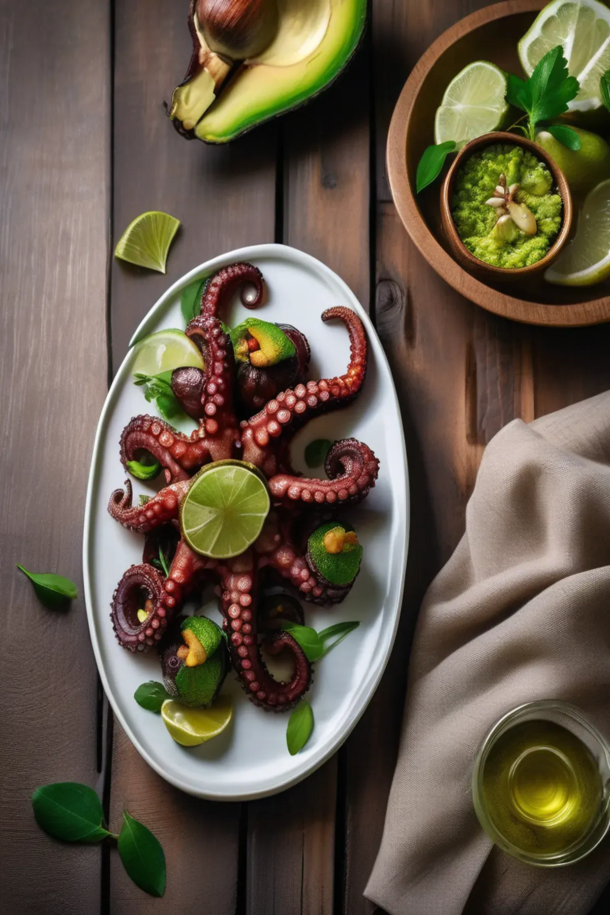 Tender roasted octopus with crispy edges paired with creamy avocado, fresh citrus, and a drizzle of herb-infused olive oil creates an elegant yet simple Mediterranean-inspired dish.