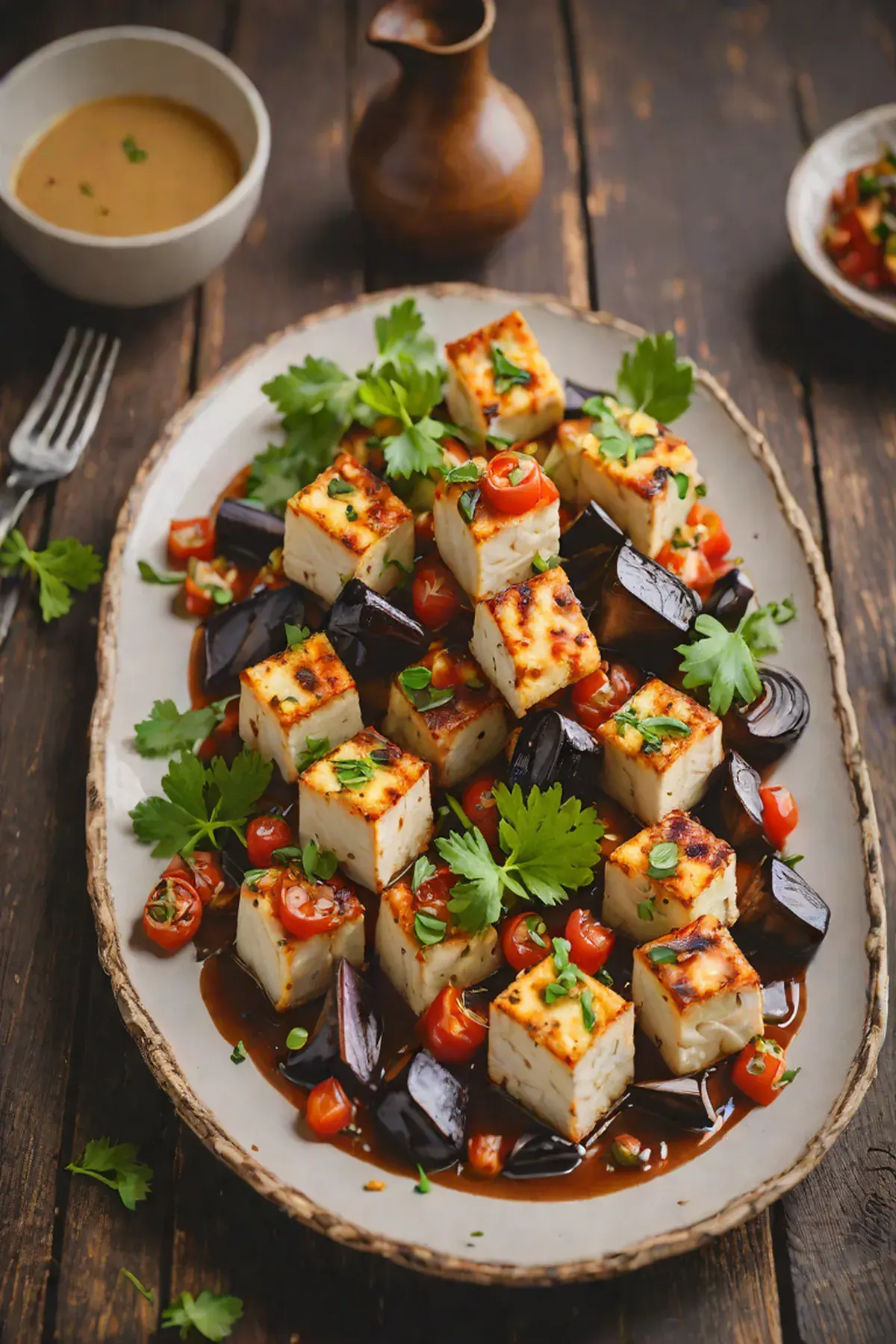 Gently fold in the roasted aubergine and fried paneer cubes, being careful not to break the paneer. Simmer together for 3-4 minutes to allow flavors to meld.
