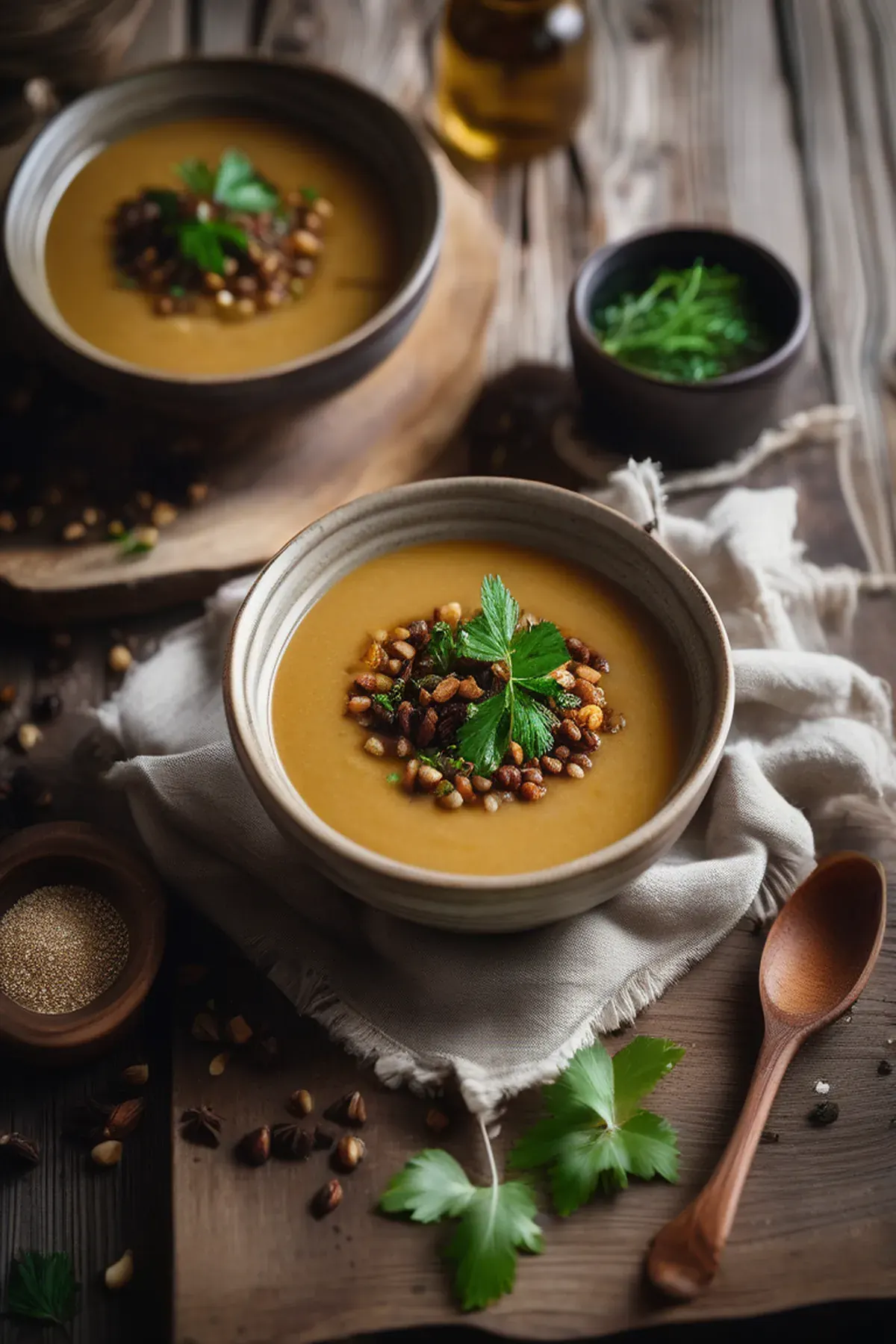 A hearty and comforting soup made with roasted parsnips and aromatic spices.
