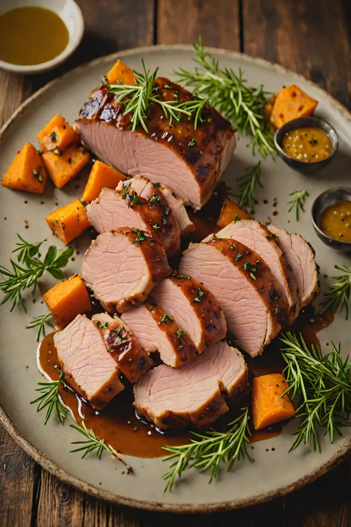 Roasted Pork with Sweet Potato and Herb Glaze