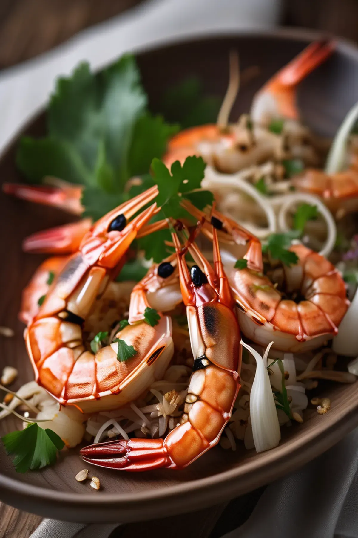 Succulent prawns paired with tender roasted daikon radish, finished with a garlic-infused oil and a hint of chili for a light yet satisfying dish with delicate Asian flavours.