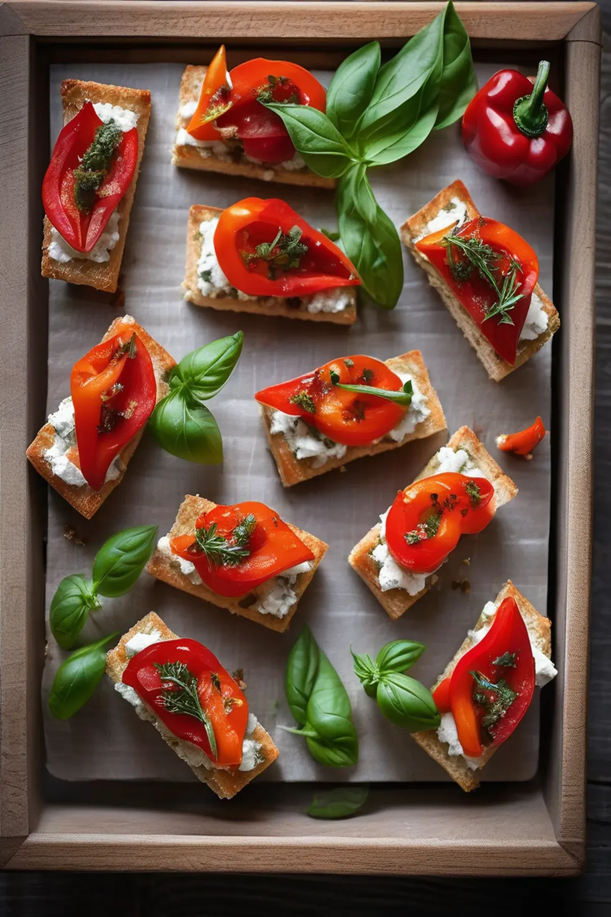 Roasted Red Pepper and Herbed Goat Cheese Canapés