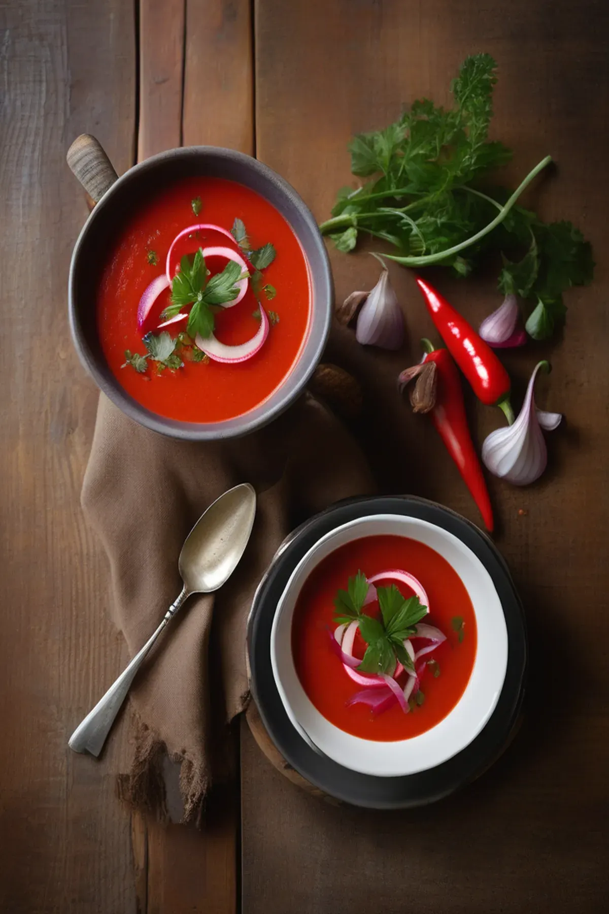 A refreshing summer soup featuring courgette, garlic, and aromatic herbs.