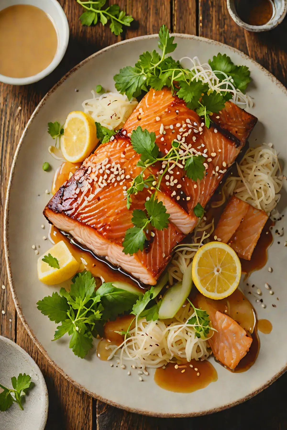 Roasted Salmon with Daikon and Miso Glaze
