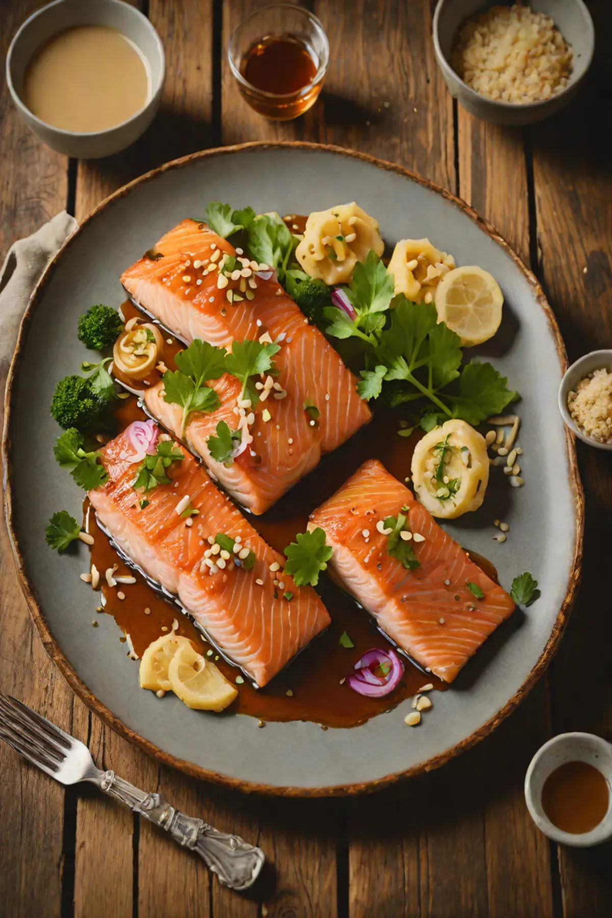 Roasted Salmon with Lotus Root and Miso Glaze