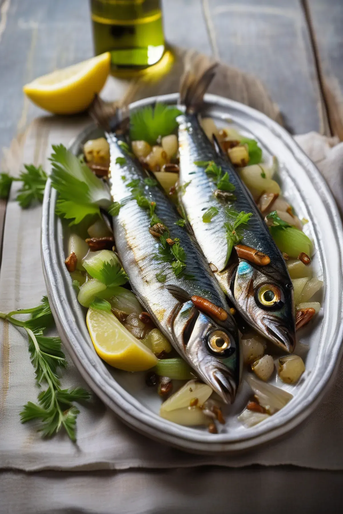 Crispy roasted sardines paired with tender caramelized celery, garlic, and a bright lemon-herb finish. A simple yet elegant Mediterranean-inspired dish that's ready in under an hour.
