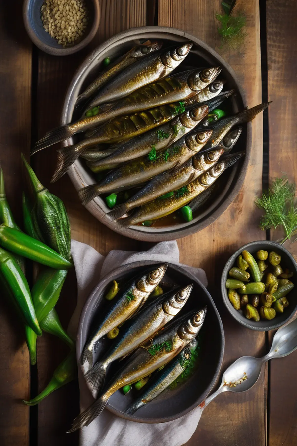 Crispy roasted sardines paired with tender, charred okra in a Mediterranean-inspired dish finished with lemon, garlic, and fresh herbs for a light yet satisfying meal.