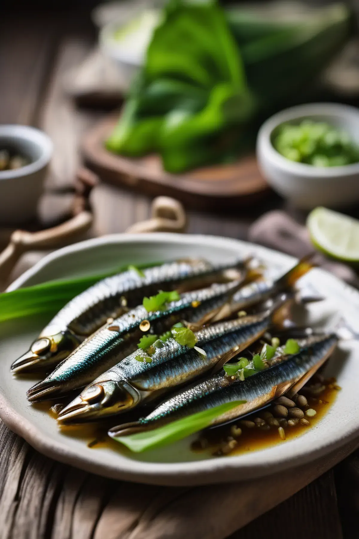 Crispy pan-roasted sardines with tender pak choi, finished with garlic, ginger, and a bright citrus glaze for a light yet satisfying seafood dish.