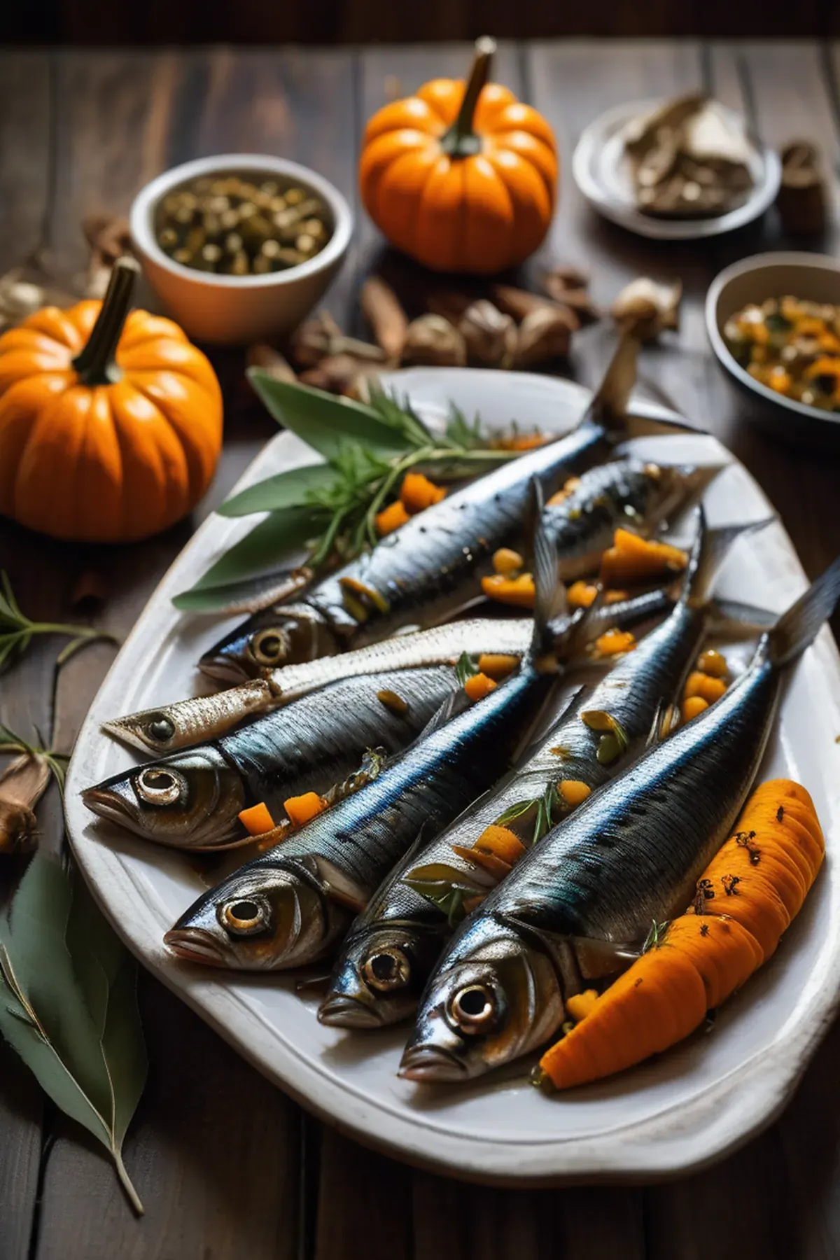 Crispy roasted sardines paired with caramelized pumpkin, finished with a drizzle of sage-infused oil and a sprinkle of toasted seeds for a sophisticated yet simple autumn-inspired dish.