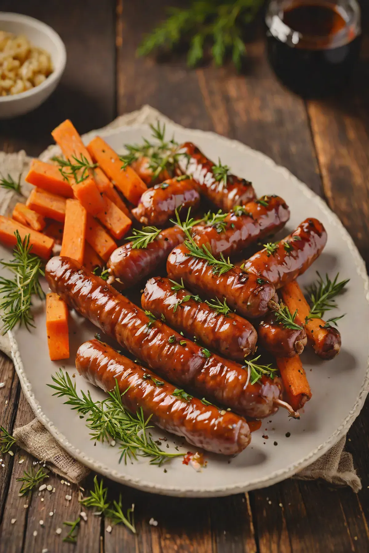 Return to the oven for 5 more minutes until the glaze reduces slightly and coats the sausages and carrots beautifully.