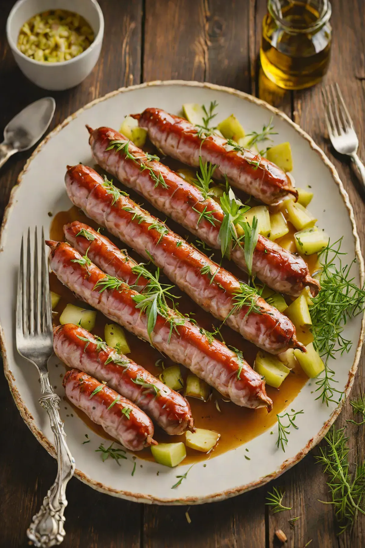 Heat olive oil in a large oven-safe skillet over medium-high heat. Once shimmering, add the sausages and sear for 3-4 minutes on each side until browned. Transfer to a plate.