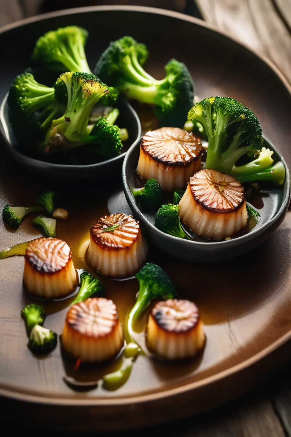 Succulent pan-seared scallops paired with crispy roasted broccoli florets, finished with a bright lemon butter sauce and fresh herbs for an elegant yet simple dinner.