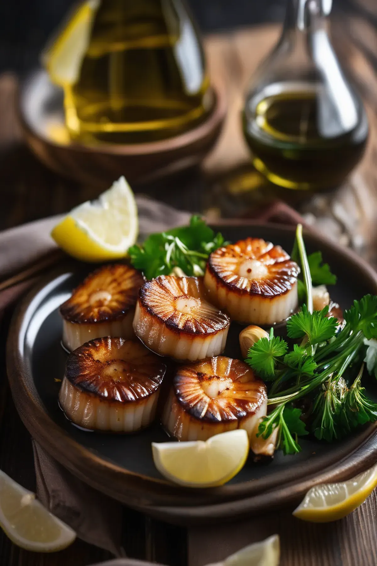 Succulent sea scallops roasted until golden with a fragrant garlic butter sauce, finished with crispy garlic chips and fresh herbs for an elegant yet simple seafood dish.