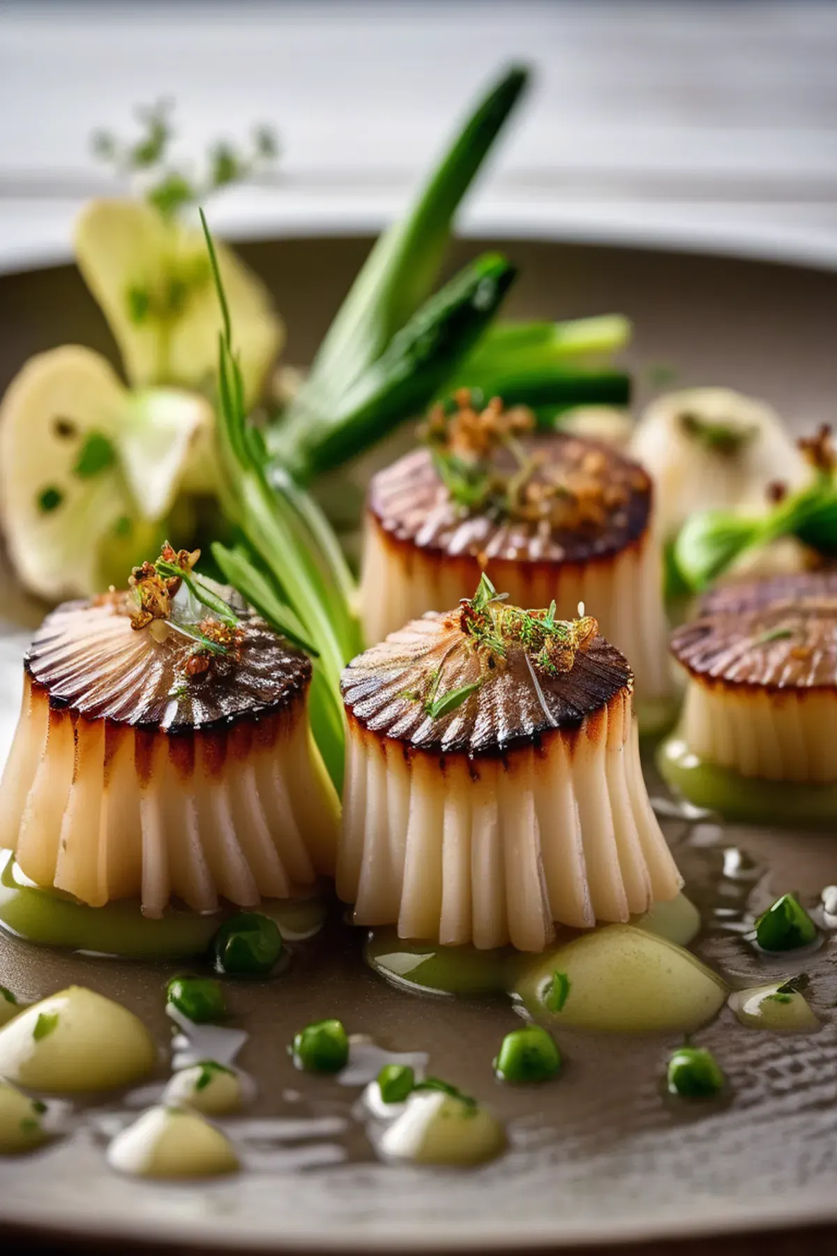 Sweet, tender scallops paired with caramelized leeks and a silky brown butter sauce infused with thyme and lemon. A sophisticated yet simple dish that brings elegance to any dinner table.
