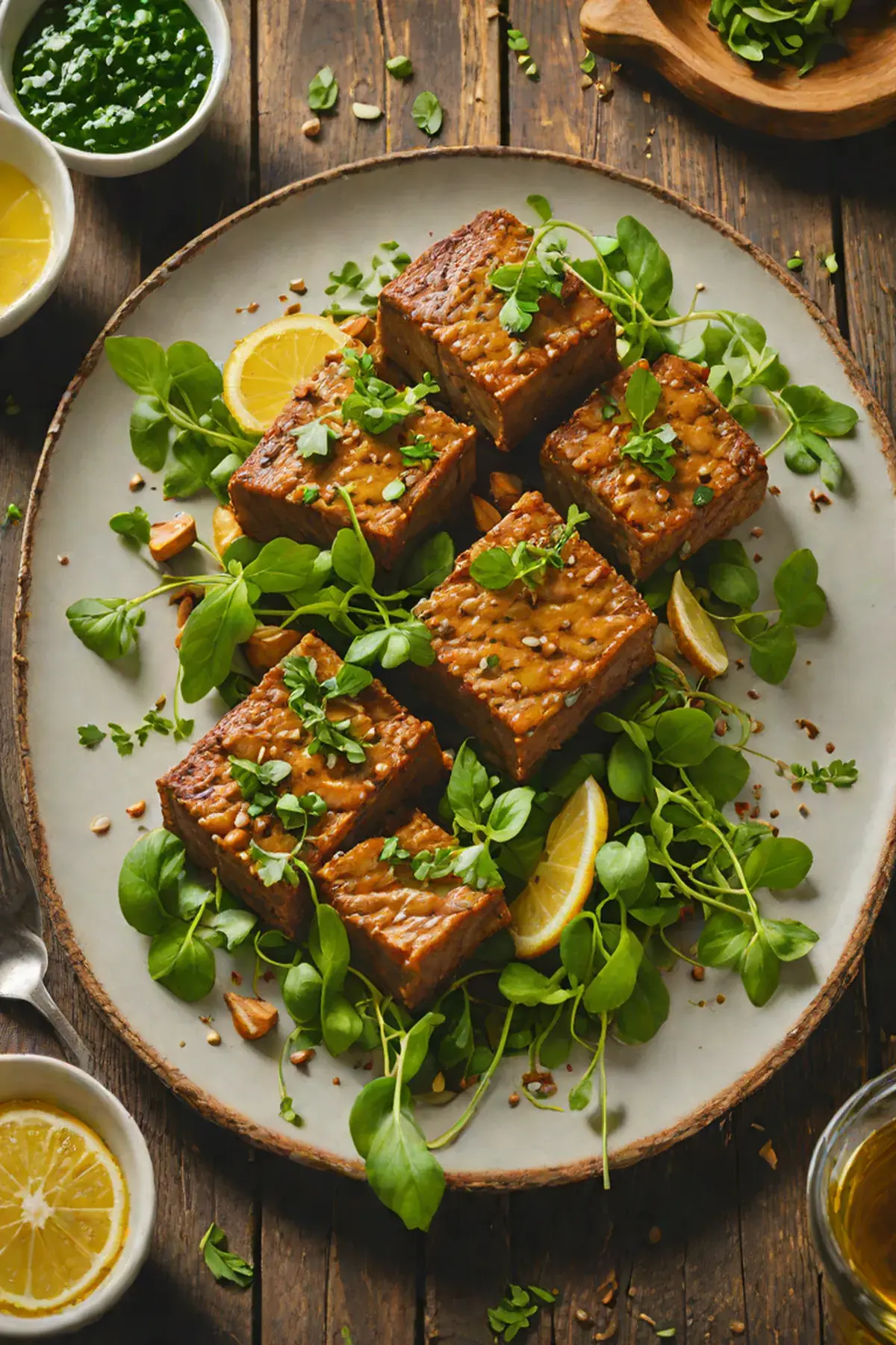 Drizzle with remaining dressing and serve immediately while the seitan is still warm and the watercress maintains its peppery bite.