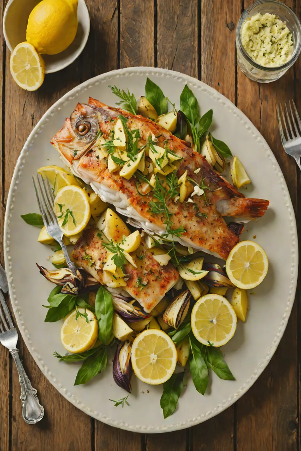 Roasted Snapper with Artichoke Hearts and Lemon Butter