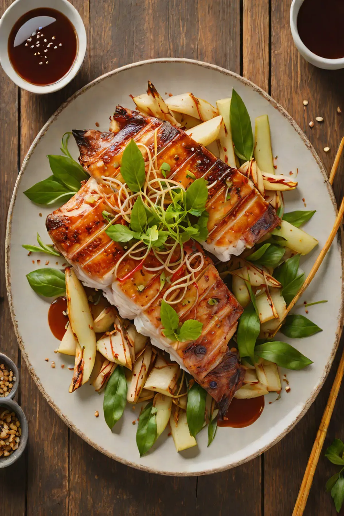 Roasted Snapper with Bamboo Shoots and Ginger-Soy Glaze