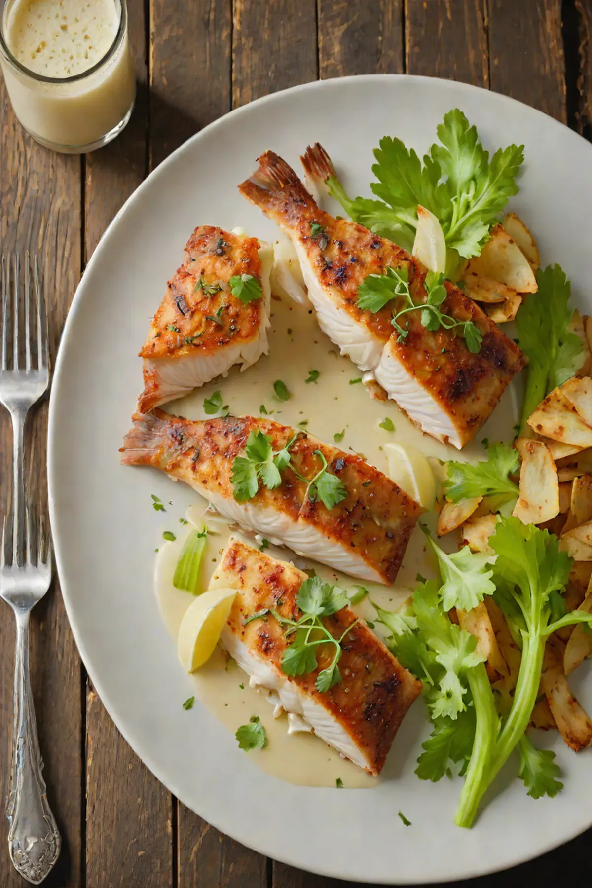 Roasted Snapper with Celery Root Purée and Crispy Celery Chips