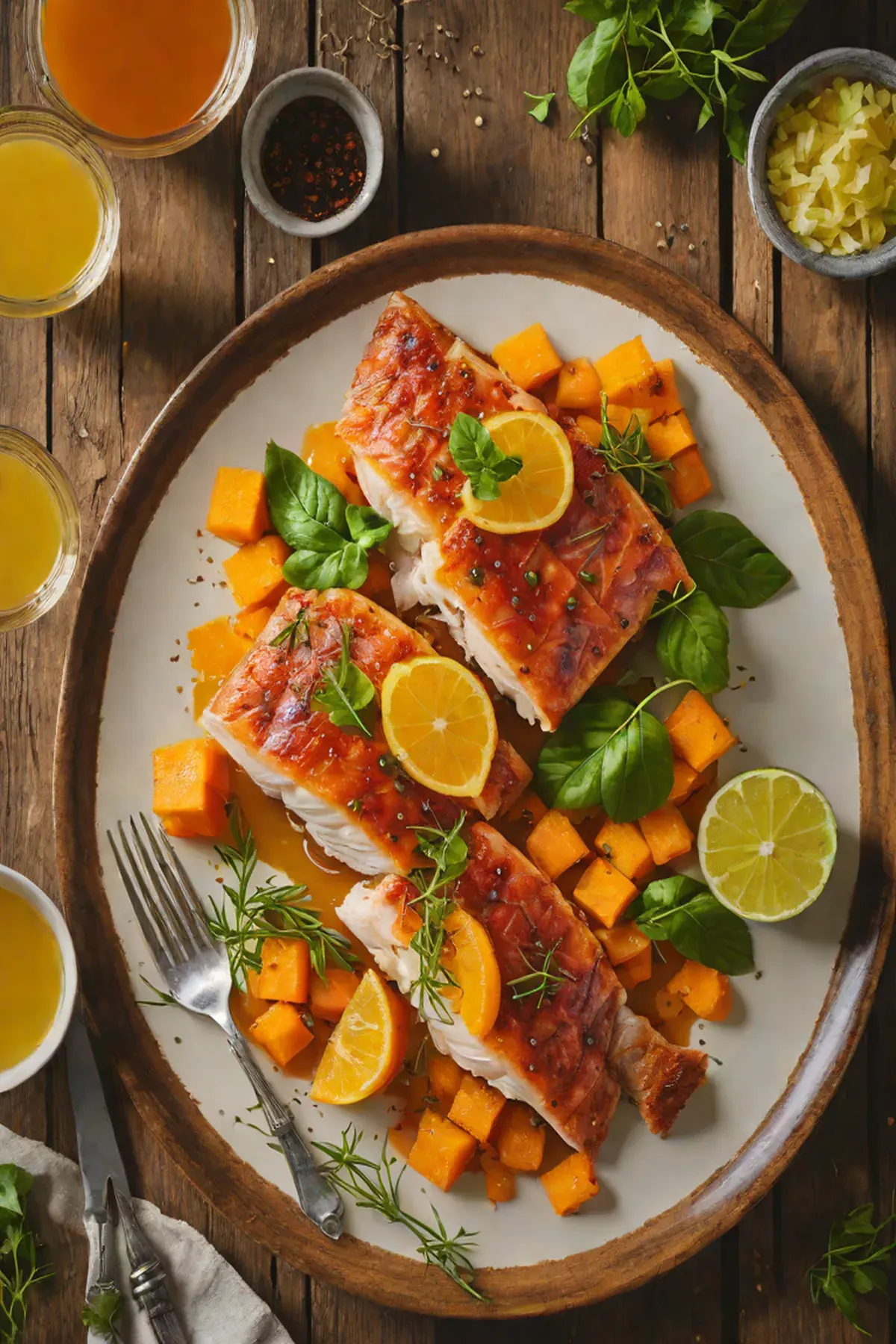 Roasted Snapper with Sweet Potato and Citrus Glaze
