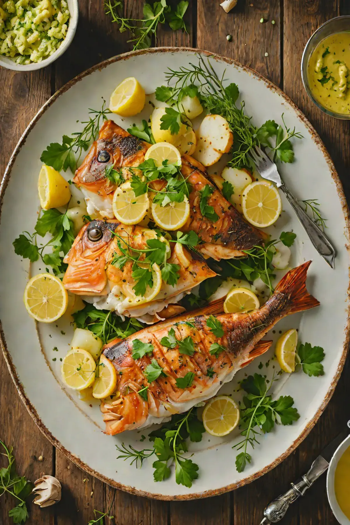 Remove from oven and arrange snapper and roasted turnips on serving plates. Drizzle pan juices over the fish and serve with fresh lemon halves.