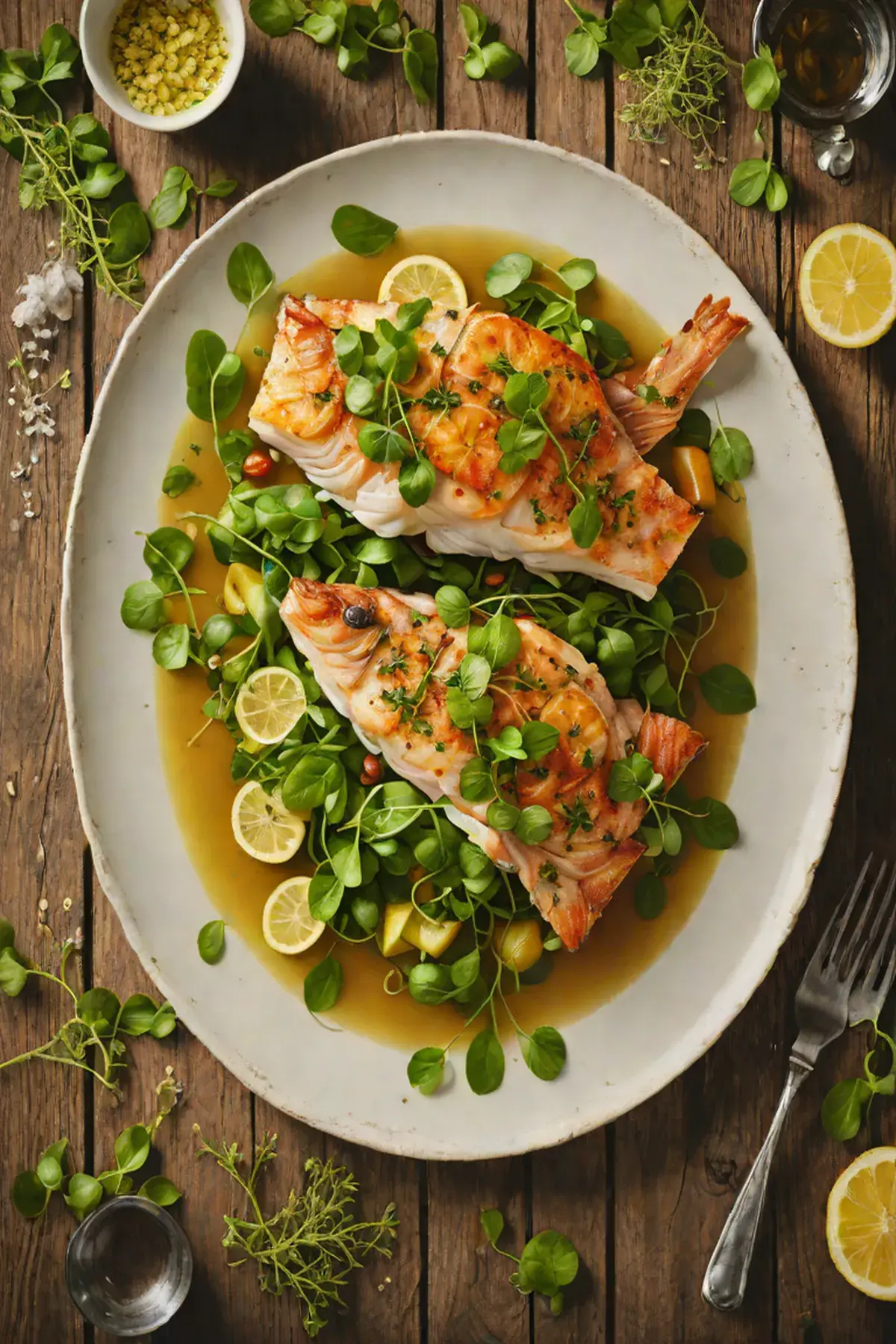 While the fish roasts, place the trimmed watercress in a large serving bowl and drizzle with the remaining 1 tablespoon of olive oil, then toss gently to coat.