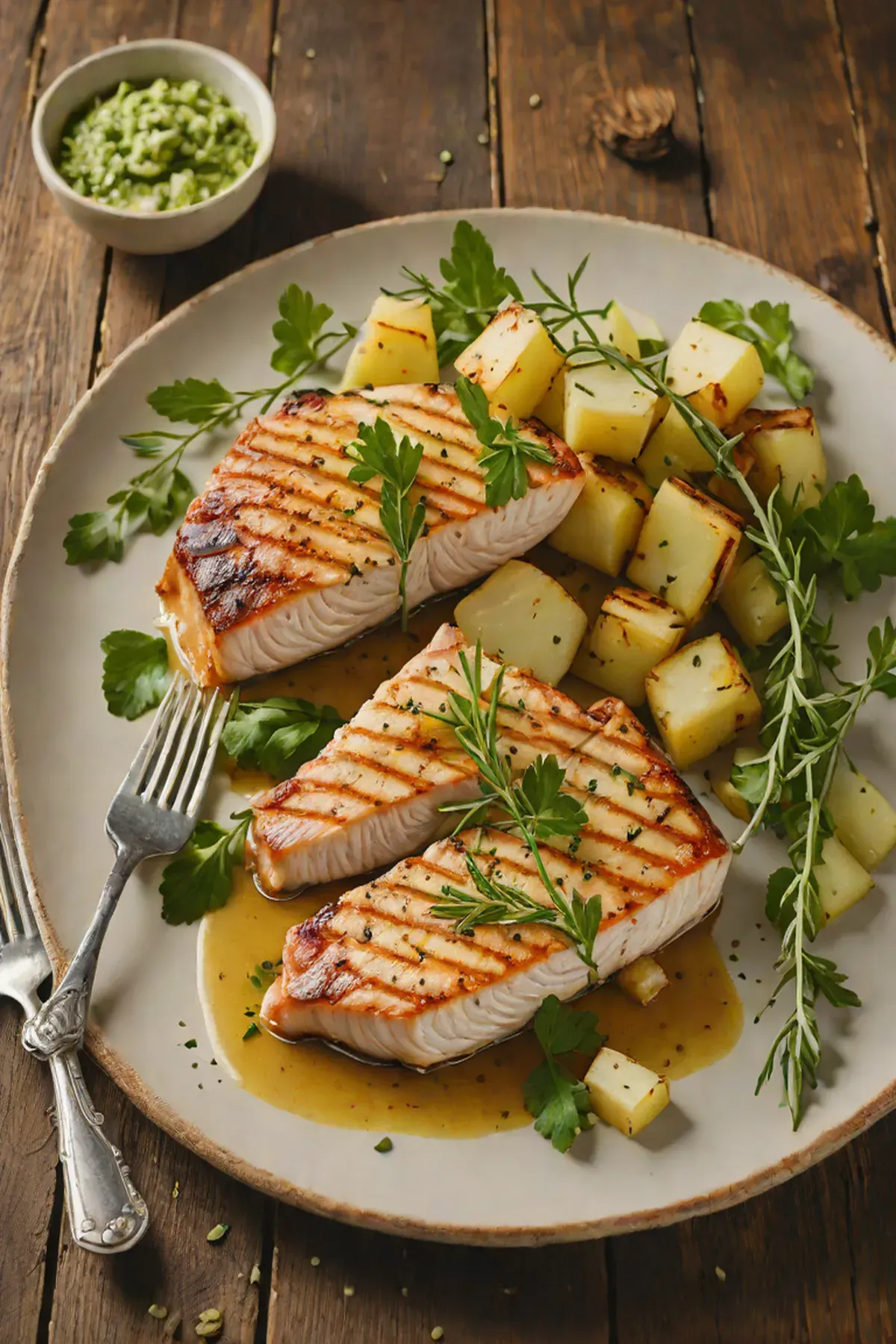 Roasted Swordfish with Caramelized Turnip and Herb Butter