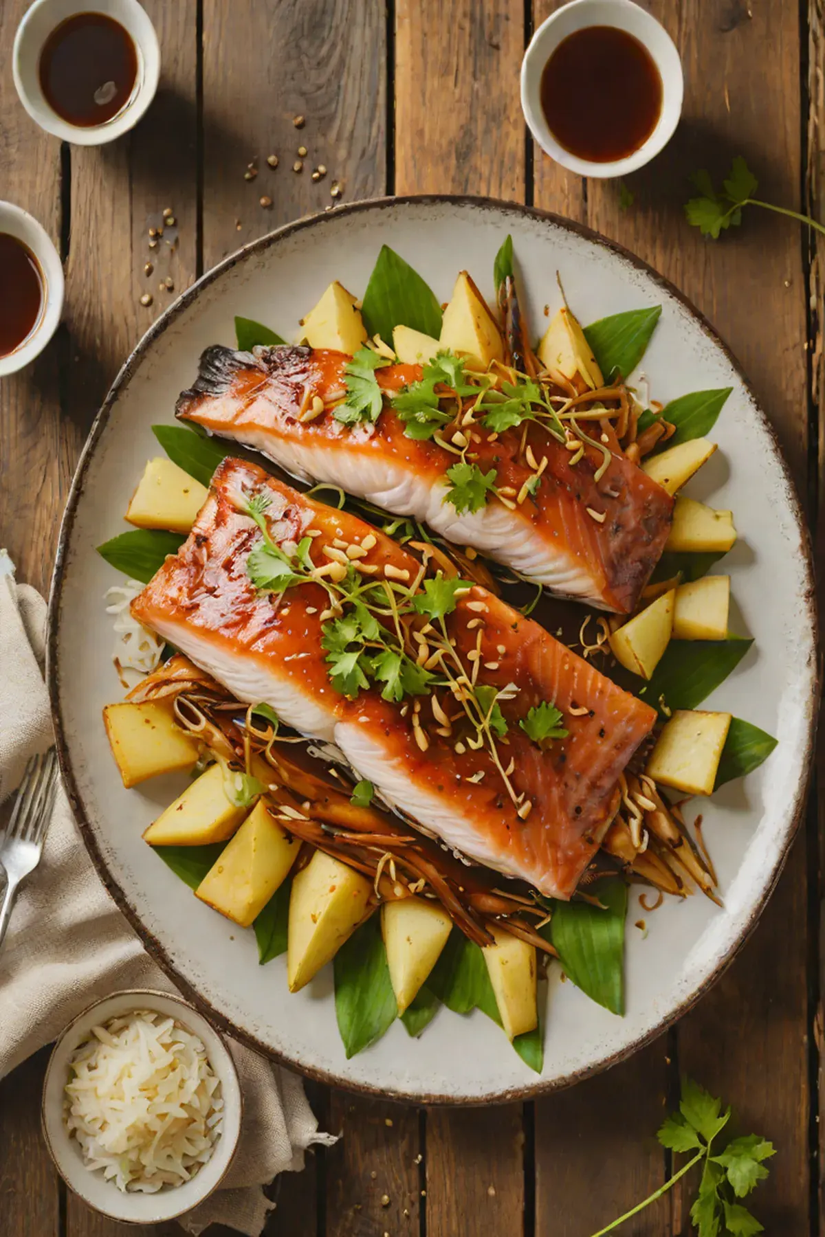 Roasted Trout with Bamboo Shoot and Ginger-Soy Glaze