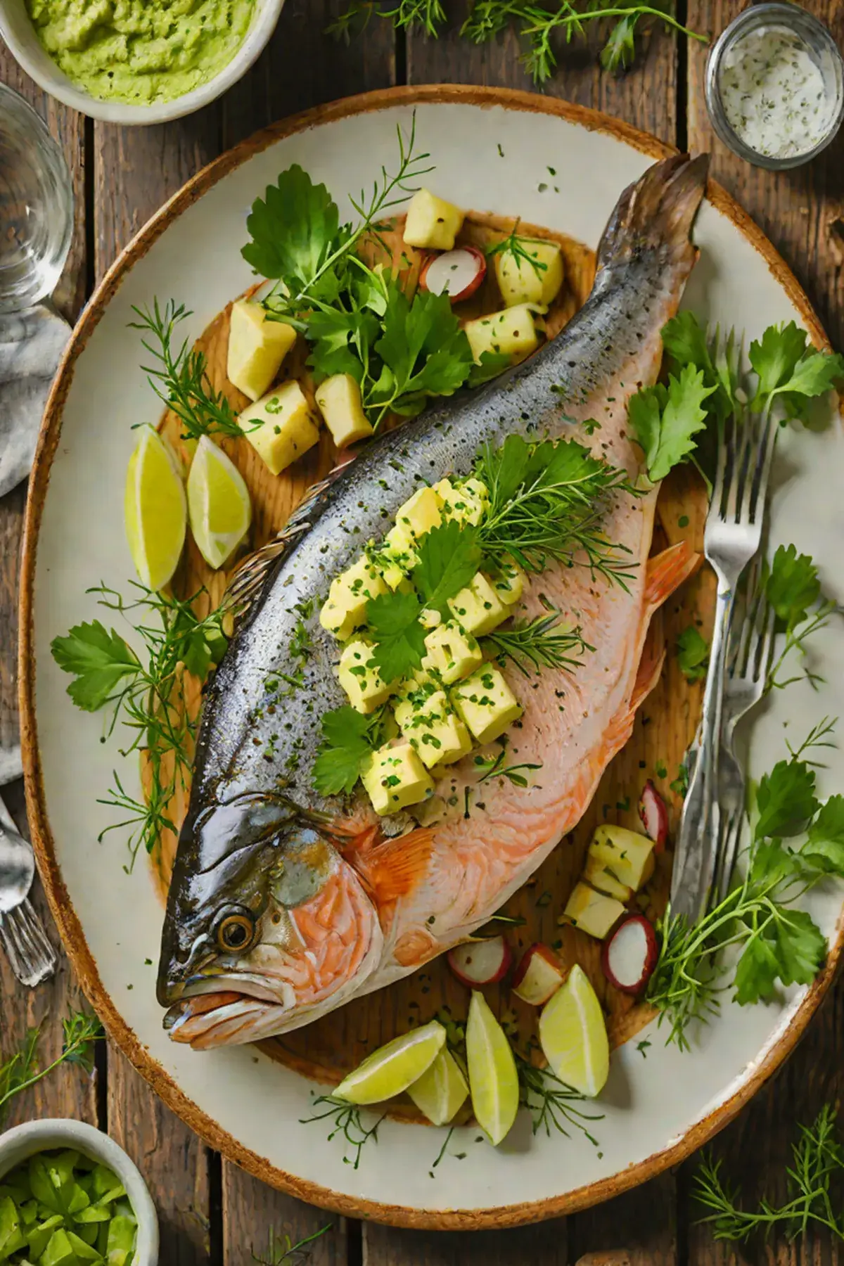 Garnish with fresh lemon wedges and additional fresh herbs if desired, then serve immediately.