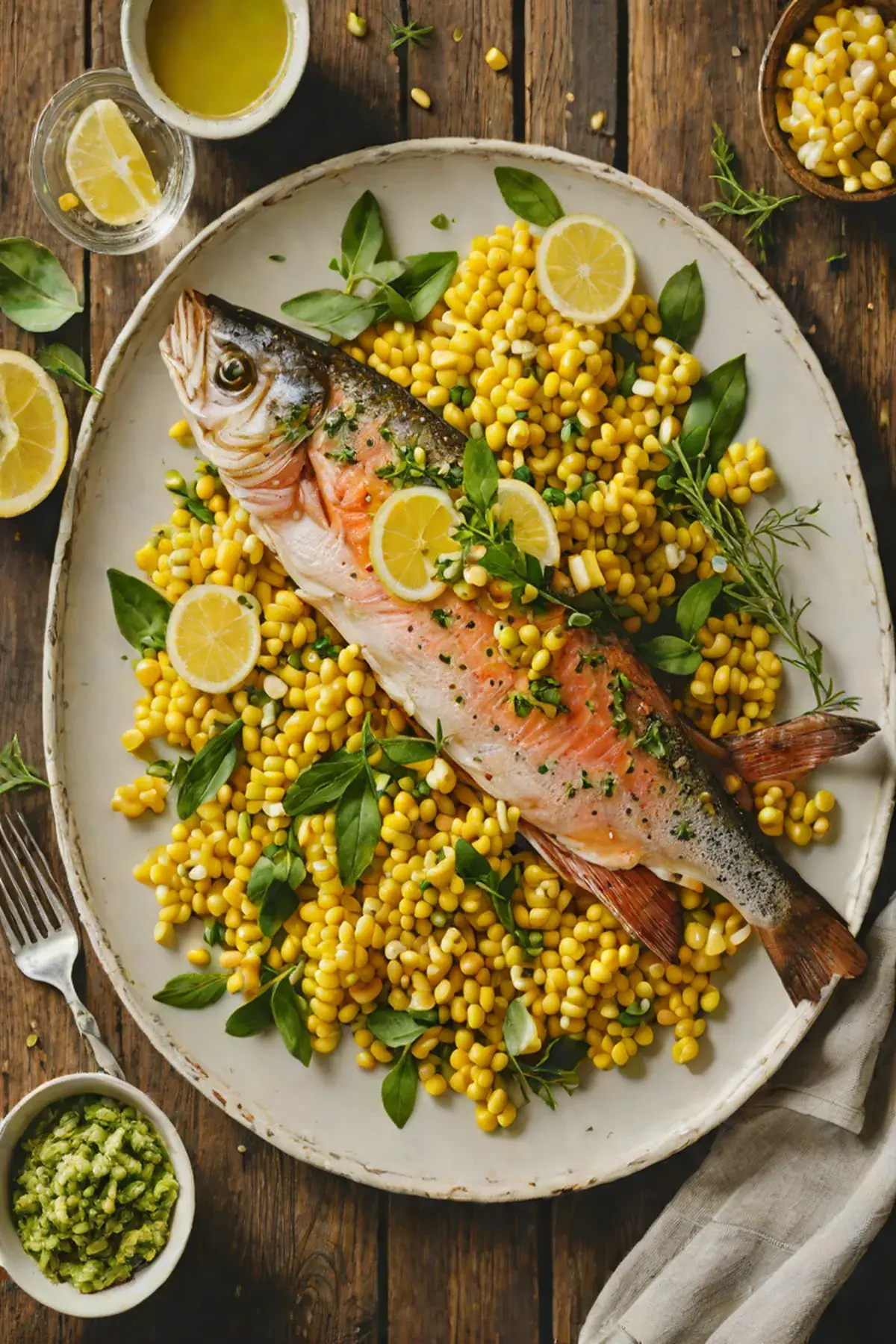 Roasted Trout with Corn and Herb Butter