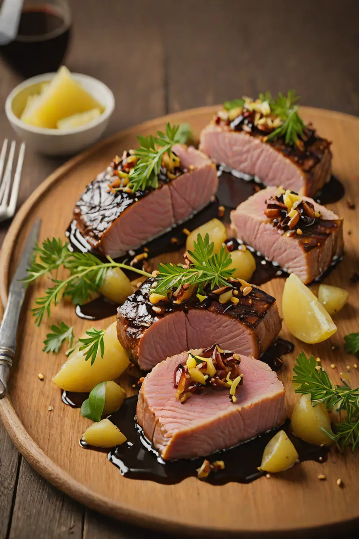 Roasted Tuna with Caramelized Onion and Balsamic Glaze