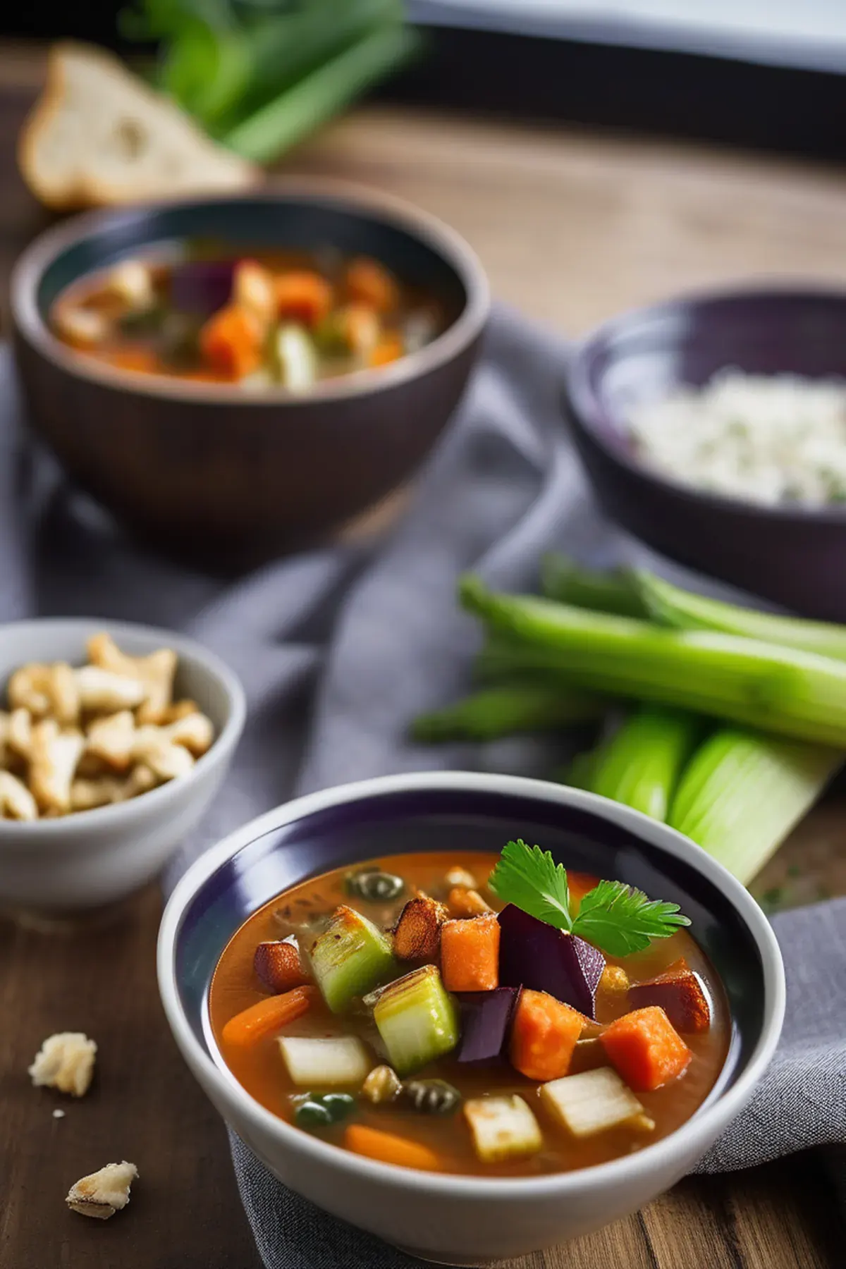 Roasted vegetable soup with halloumi ‘croutons’