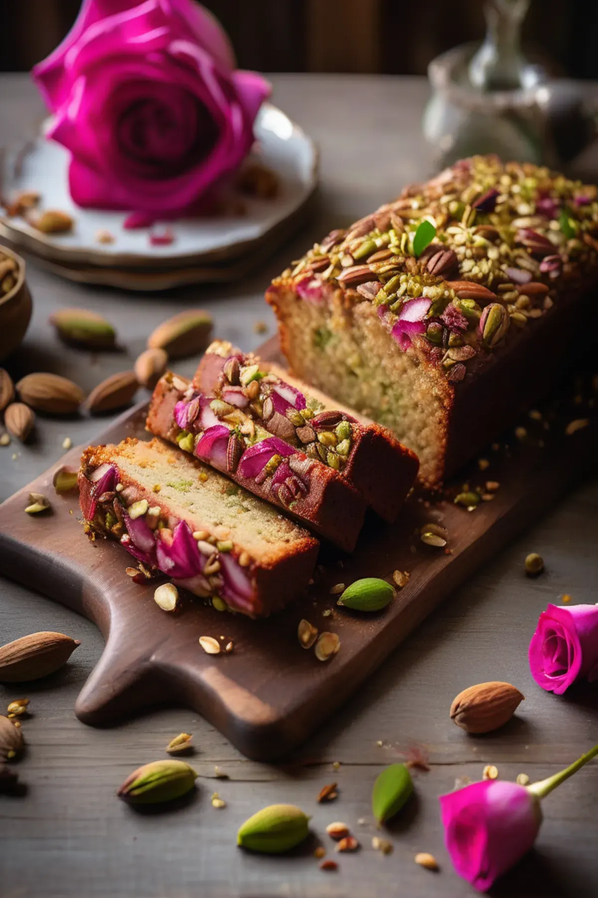 This beautiful rose and pistachio cake is one of my absolute favorites to bake when I want something a little special but don't want to spend hours in the kitchen. It comes together in just ten minutes of prep, which means you can have it baking before you know it. The pistachio kernels add such a lovely delicate flavor, plus they're packed with heart healthy fats and antioxidants. Rose water gives everything a subtle floral elegance that feels quite fancy, but honestly it's so simple to make. The glossy rose petal icing on top makes it look professionally done, even though it's genuinely straightforward. This is the kind of cake I turn to when I need an impressive dessert that doesn't require any fussing about.