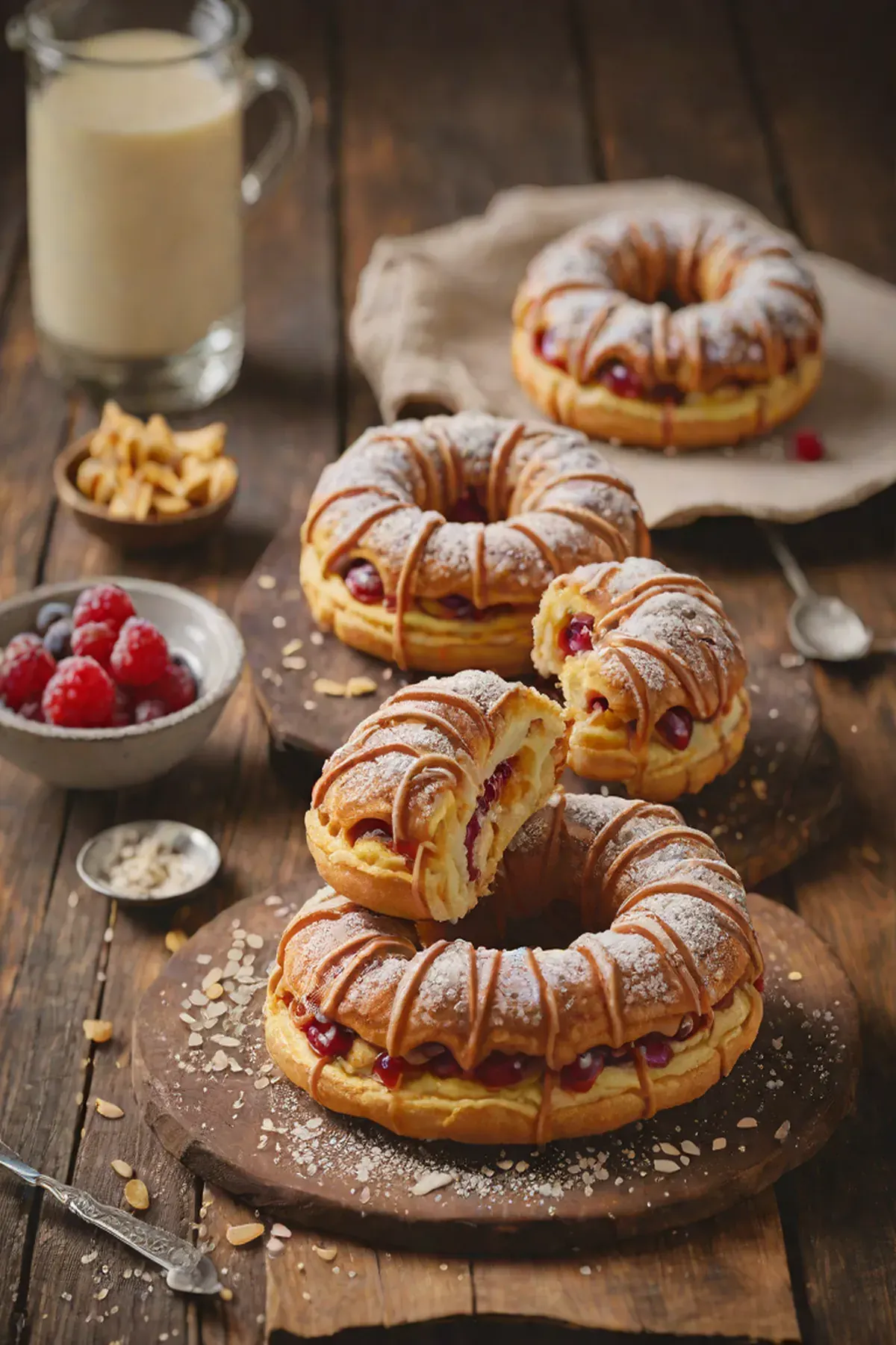 Preheat the oven to 200°C. Bake the pastries for 15-20 minutes, or until golden brown.