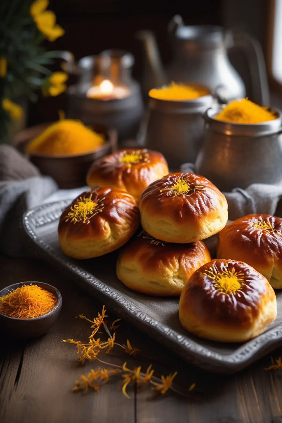 Brush each bun with reserved saffron liquid for a beautiful golden glaze, then bake for 20-25 minutes until deep golden brown and hollow-sounding when tapped underneath.
